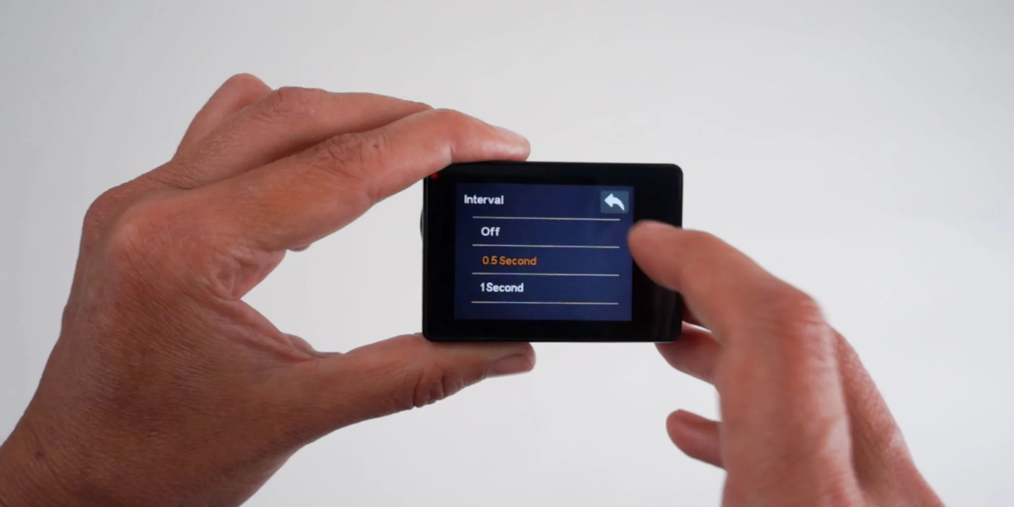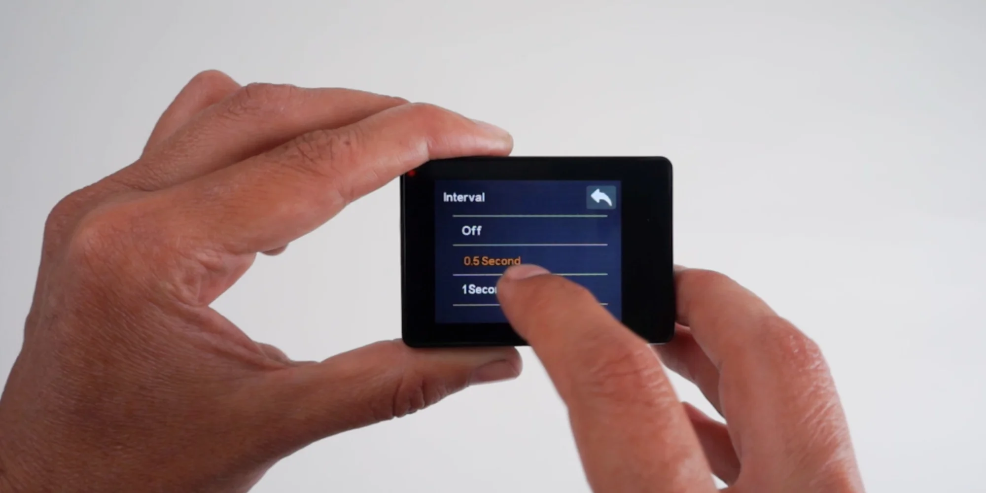 Survey3:间隔拍摄设置 以下视频和分步指南将向您展示如何调整间隔触发设置,以利用内置定时器功能拍摄图像。 分步教程 1. 点击拍摄设置图标 2. 点击间隔拍摄图标 3. 点击屏幕并向上或向下拖动以更改设置(0.5秒为推荐设置) 4. 点击返回箭头 5. 下滑顶部栏返回主菜单